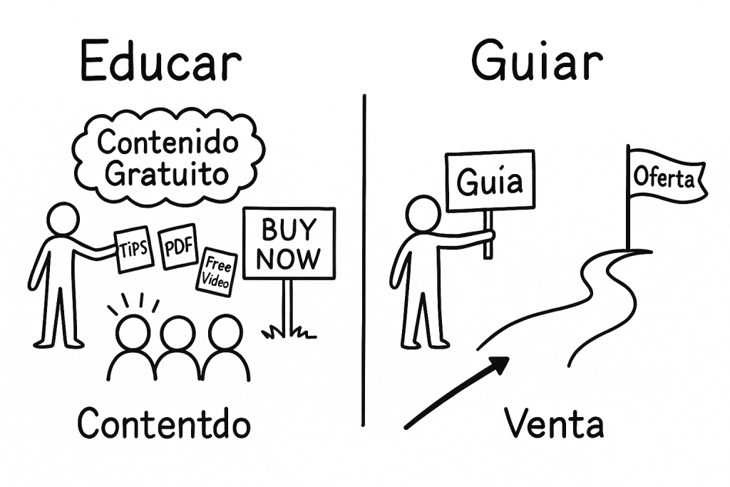 “Da valor primero… y las ventas vendrán”.¿Cuántas veces has escuchado esa frase? Si vendes cursos, mentorías o servicios, probablemente ya estás creando contenido gratuito: videos, PDFs, reels, lives… todo con la esperanza de generar confianza y vender. Pero hay un problema: La mayoría de ese contenido no está diseñado para vender. Está diseñado para educar. […]